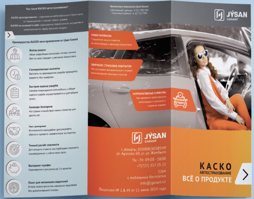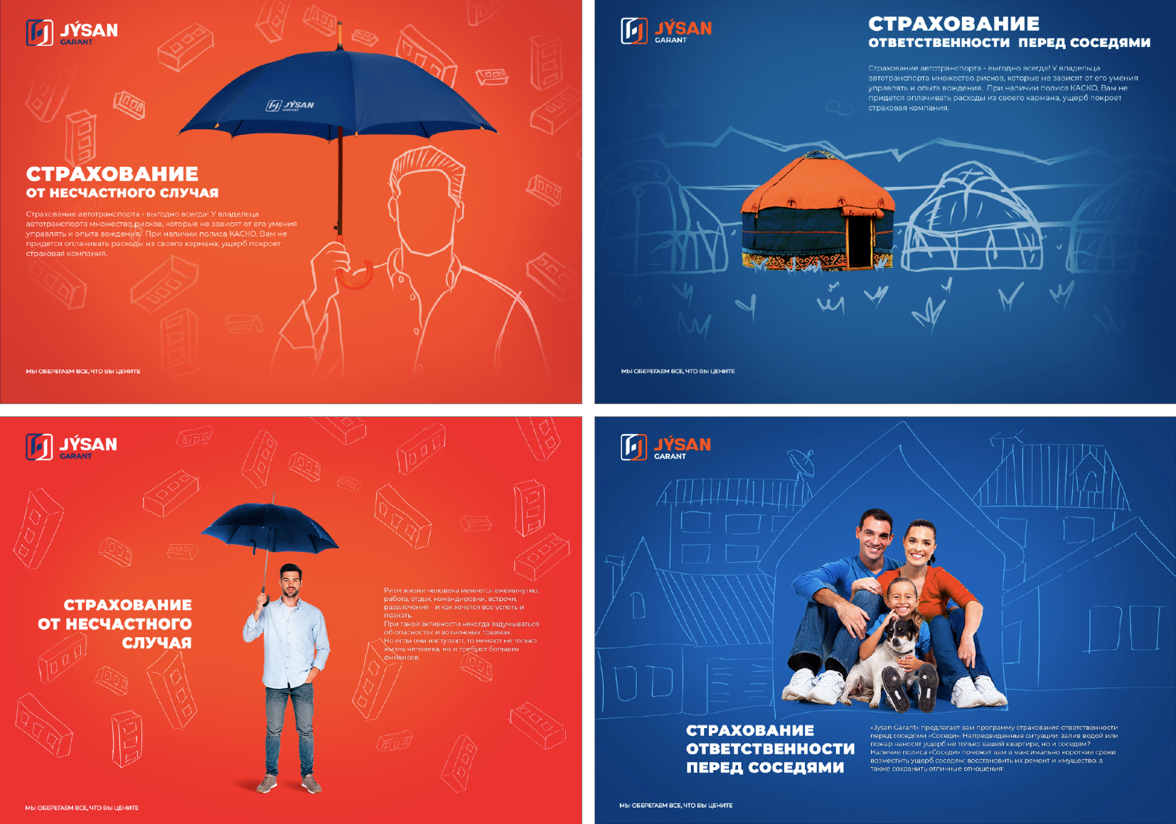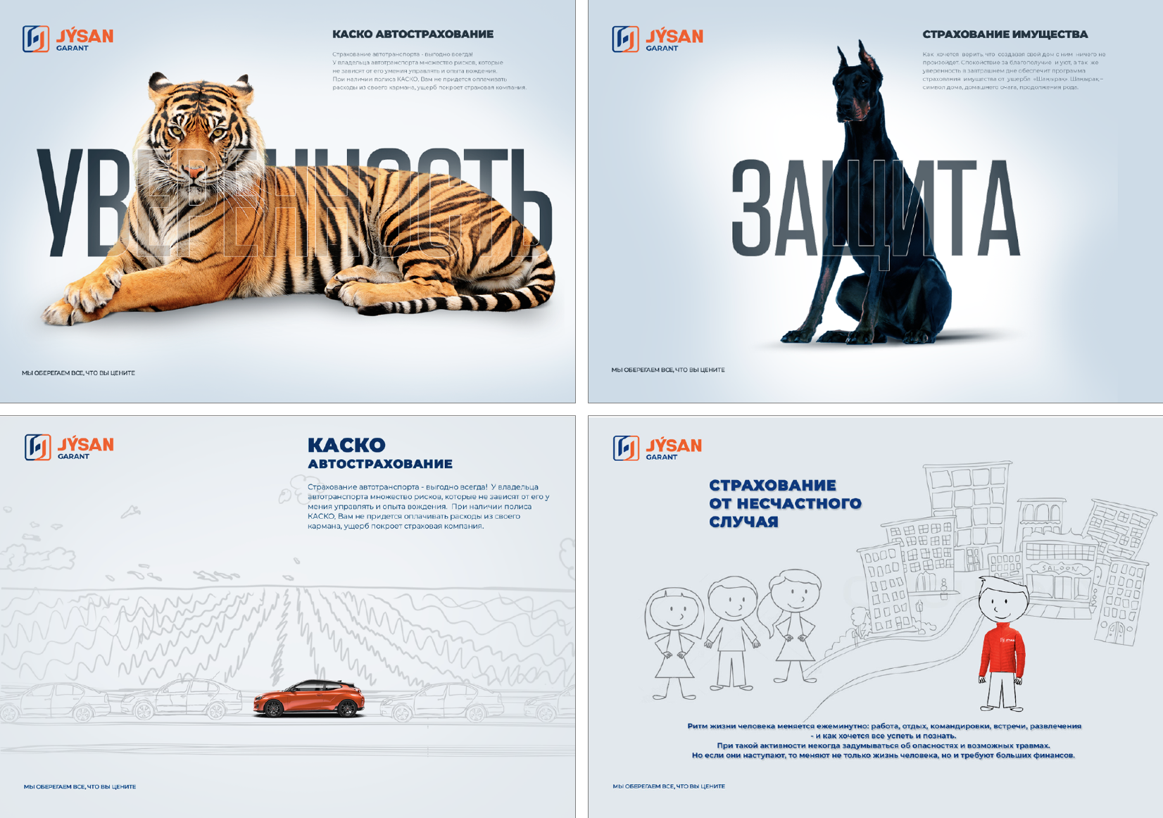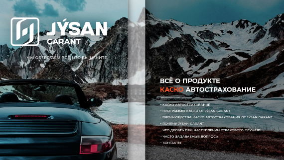 Jysan Garant — универсальная страховая компания Казахстана, предлагающая широкий спектр услуг в сфере общего страхования. На момент старта проекта в октябре 2019 года перед компанией стояла задача не просто визуально обновиться, а передать надёжность, открытость и понятность бренда через каждый коммуникационный элемент.